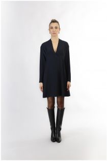 Robe courte à décolleté profond et enrichie de plis en tissu fluide. vêtement polyvalent au quotidien pour différentes occasions d'utilisation à porter soit avec une paire de bottes hautes soit avec des mocassins.