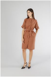 Robe chemise robe midi avec ceinture en toile de parachute teinte en pièce. manches longues retroussables. fente au dos. portez-le avec des sandales pour rendre votre look décontracté et unique.