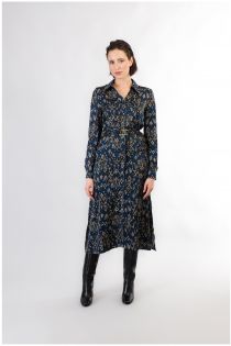 Robe chemise en viscose imprimée. le vêtement possède des manches longues et des fentes latérales. fermeture avant avec boutons apparents. sa coupe douce ne marque pas la silhouette. la taille est soulignée grâce à la ceinture en tissu avec boucle logo cafènoir.
