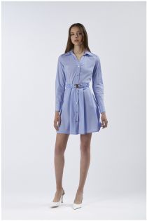 Robe chemisier courte avec ceinture à boucle avec logo. robe à manches longues en popeline de coton stretch rayée.