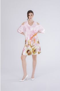 robe courte en satin imprimé avec hublots aux épaules pink gradient flower