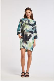 robe courte en tissu fluide imprimé avec paillettes multigreen camouflage