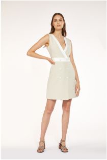 Robe croisée raffinée et délicate au goût vintage avec ceinture et encolure en contraste