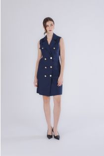 Robe sans manches à double boutonnage en toile de parachute stretch au design contemporain et structuré. sa silhouette structurée ses boutons contrastants et sa coupe confortable en font la pièce idéale pour des looks élégants et polyvalents. le mannequin mesure 171 cm et porte une taille s. coupe : standard.