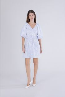 robe en popeline rayée et brodée light blue striped