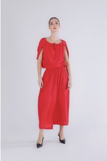 Robe longue pour femme fendue sur le devant et à taille élastiquée idéale pour l'été. les larges emmanchures créent un drapé élégant sur les épaules sublimant la silhouette avec légèreté et fluidité. le mannequin mesure 1.75 m et porte une taille s. coupe : confortable.