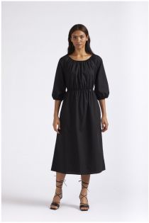 Robe longue à larges manches raglan en popeline de coton. le décolleté dans le dos est particulier. jeu de fronces aux manches et à l'encolure.