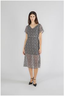 Robe longue avec manches volantées et fente latérale. réalisé dans une élégante georgette fil coupé imprimée qui ajoute une touche de légèreté et de féminité. parfait pour créer des looks uniques.