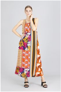 Robe longue sans manches fabriquée dans un tissu spécial en viscose. disponible en deux variantes d'impression toutes deux parfaites pour toute occasion.