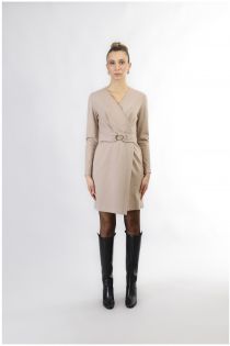 Robe portefeuille confectionnée en tissu extensible au point de milan. robe à manches longues avec encolure croisée. le vêtement est complété par une ceinture en tissu avec boucle logo cafènoir. fermeture zippée invisible au dos. vêtement quotidien polyvalent pour différentes occasions d'utilisation.