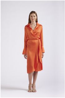 Élégante robe portefeuille à manches longues en satin de viscose léger. col en v. robe parfaite pour une cérémonie.
