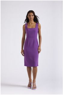 Robe fourreau sans manches mi-longue encolure carrée. réalisée dans un tissu frais et fluide.