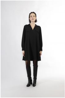 Robe tunique à col confectionnée en tissu fluide. la coupe super douce ne marque pas la silhouette. vêtement polyvalent au quotidien pour différentes occasions d'utilisation à porter soit avec une paire de bottes hautes soit avec des mocassins.