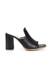 Mule en cuir tressé. la doublure et la semelle intérieure sont en cuir. talon épais de 9 cm de haut.
