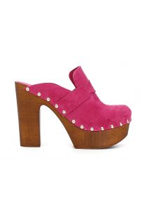 Sabots en daim disponibles en 6 couleurs sur talon haut.