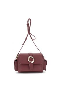 Sac bandoulière en similicuir martelé avec rabat asymétrique à boucle et multiples poches latérales. Bandoulière ajustable pour un porté épaule double.
