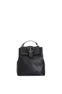 Sac à dos avec rabat imprimé monogramme fermeture à boucle recouverte poignée supérieure poche arrière zippée et lettrage en métal pour un style sophistiqué.
