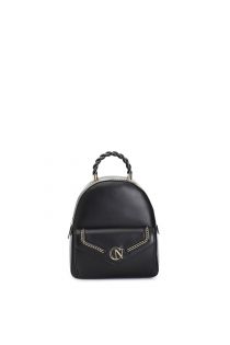 Sac à dos avec poche avant patinée. article orné d'une chaîne en métal doré et du logo cafènoir. manche en métal avec tube. fermeture à glissière