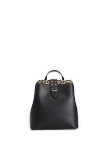 Sac à dos rigide avec fermeture éclair en motif imprimé. sac à dos agrémenté d'une boucle avec micro clous dorés et logo. bretelles réglables.