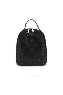 Sac à dos avec matelassage en losanges avec application de rivets assortis et logo cafènoir bicolore. deux poches intérieures une avec fermeture zippée et l'autre ouverte. double ouverture avec zip. bretelles réglables.