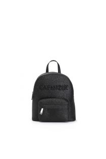 Sac à dos noir à paillettes avec fermeture éclair. logo cafènoir brodé. sac à dos avec fermeture éclair sur le devant. bretelles réglables.