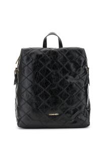 Sac à dos en similicuir métallisé souple, orné de broderies géométriques sur le devant, de bretelles réglables, d'une poche arrière plate et de boucles carrées. Inscription métallique élégante.