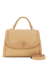 Sac à main élégant en similicuir grainé, avec rabat et armature rembourrée. Logo café en métal et bandoulière amovible avec mousquetons dorés.