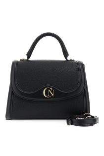 Sac à main élégant en similicuir grainé, avec rabat et armature rembourrée. Logo café en métal et bandoulière amovible avec mousquetons dorés.