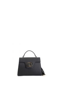 sac à main à rabat en saffiano avec logo ovale émaillé assorti black