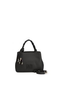Sac à main avec anse mignonne tressée et logo rectangulaire embossé ton sur ton. sac avec double compartiment et une poche intérieure zippée. fermeture à glissière. sac avec bandoulière.