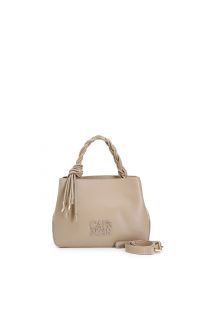 sac à main avec poignée tressée et logo rectangulaire ton sur ton tortora