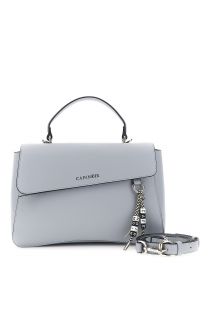 sac à main avec rabat effet cuir grainé et breloque logo colorée sky