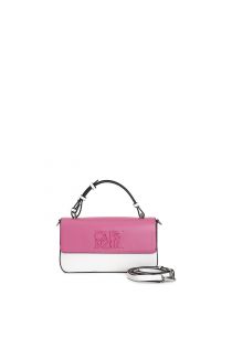 sac à main bicolore avec logo assorti, bandoulière et rabat amovibles hot pink