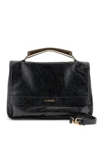 Sac à main Naplak effet cuir avec rabat, poignée métallique rigide, inscription dorée et bandoulière amovible pour un style polyvalent.