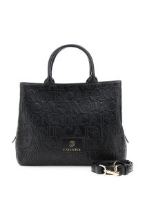 sac à main effet cuir avec logo en relief sur toute la surface black
