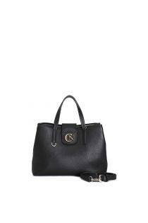 Sac en cuir martelé avec anses plates cloison zippée et rabat décoratif siglé. equipé d'une bandoulière amovible pour plus de polyvalence et d'élégance.