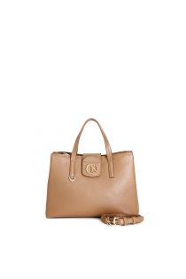 Sac en cuir martelé avec anses plates cloison zippée et rabat décoratif siglé. equipé d'une bandoulière amovible pour plus de polyvalence et d'élégance.