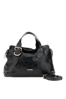 Sac à main en similicuir métallisé orné d'un motif géométrique brodé sur le devant et le dos. Anses réglables avec boucles métalliques à logo et bandoulière amovible.