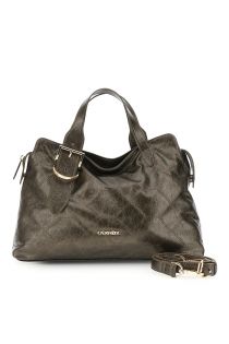 Sac à main en similicuir métallisé orné d'un motif géométrique brodé sur le devant et le dos. Anses réglables avec boucles métalliques à logo et bandoulière amovible.