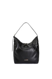 sac à plis, motif floral découpé au laser, rivets décoratifs et poignée réglable black