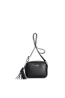 sac appareil photo en cuir texturé avec bandoulière avec mousquetons et pompon black