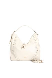 sac avec pierres cabochons, mini rivets, poignée et bandoulière rembourrées ivory