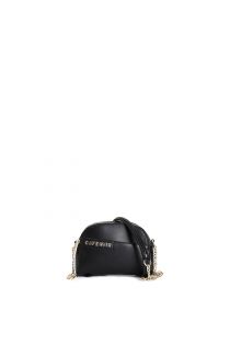 Sac à bandoulière avec poche asymétrique et lettrage appliqué bandoulière en chaîne et bandoulière rembourrée pour un confort maximum et un style élégant.