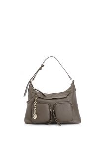 Sac avec poches avant et breloque en métal personnalisée. compartiment unique et poche intérieure zippée. fermeture à glissière.