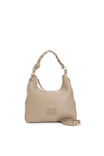sac avec poignée tissée et logo rectangulaire ton sur ton tortora