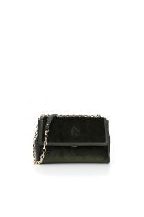 sac avec rabat en velours relief, chaîne d'épaule. green