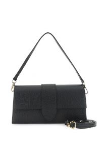 sac bandoulière à rabat en cuir martelé avec bandoulière amovible black