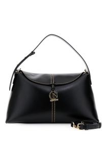 Sac bandoulière en similicuir avec rabat orné de surpiqûres contrastantes et d'un pendentif en métal doré à logo. Bandoulière amovible pour une utilisation pratique et polyvalente.