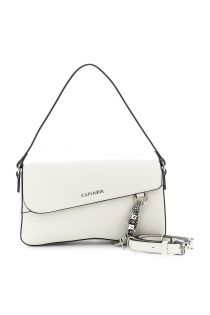 sac bandoulière effet cuir grainé avec breloque logo colorée ivory