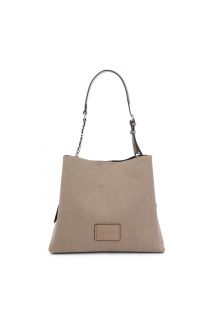 sac bandoulière effet suède avec grand lettrage sur la bandoulière taupe